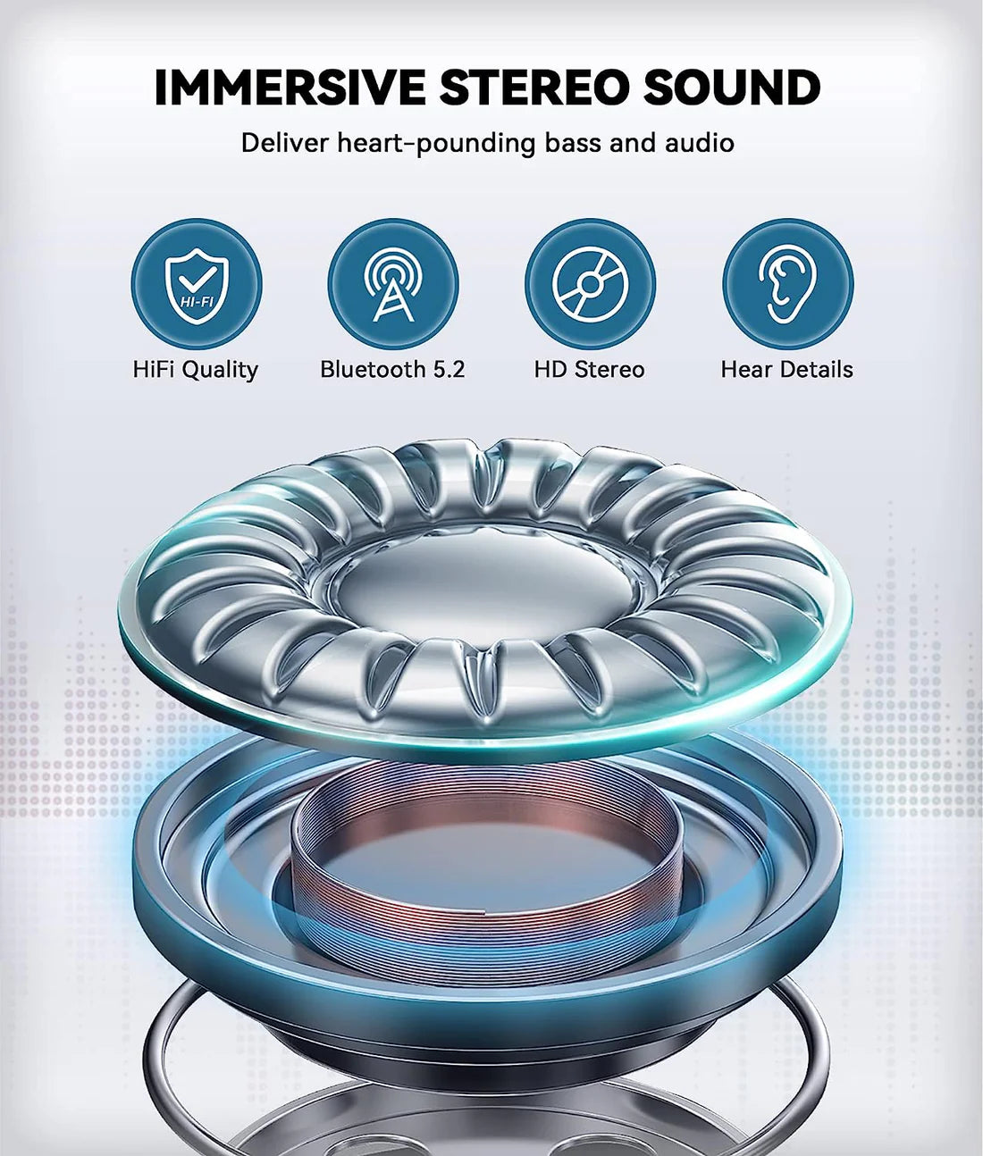 - ADVANCED BLUETOOTH 5.2 TECHNOLOGY: Enhances device compatibility and delivers immersive stereo sound across all music genres.